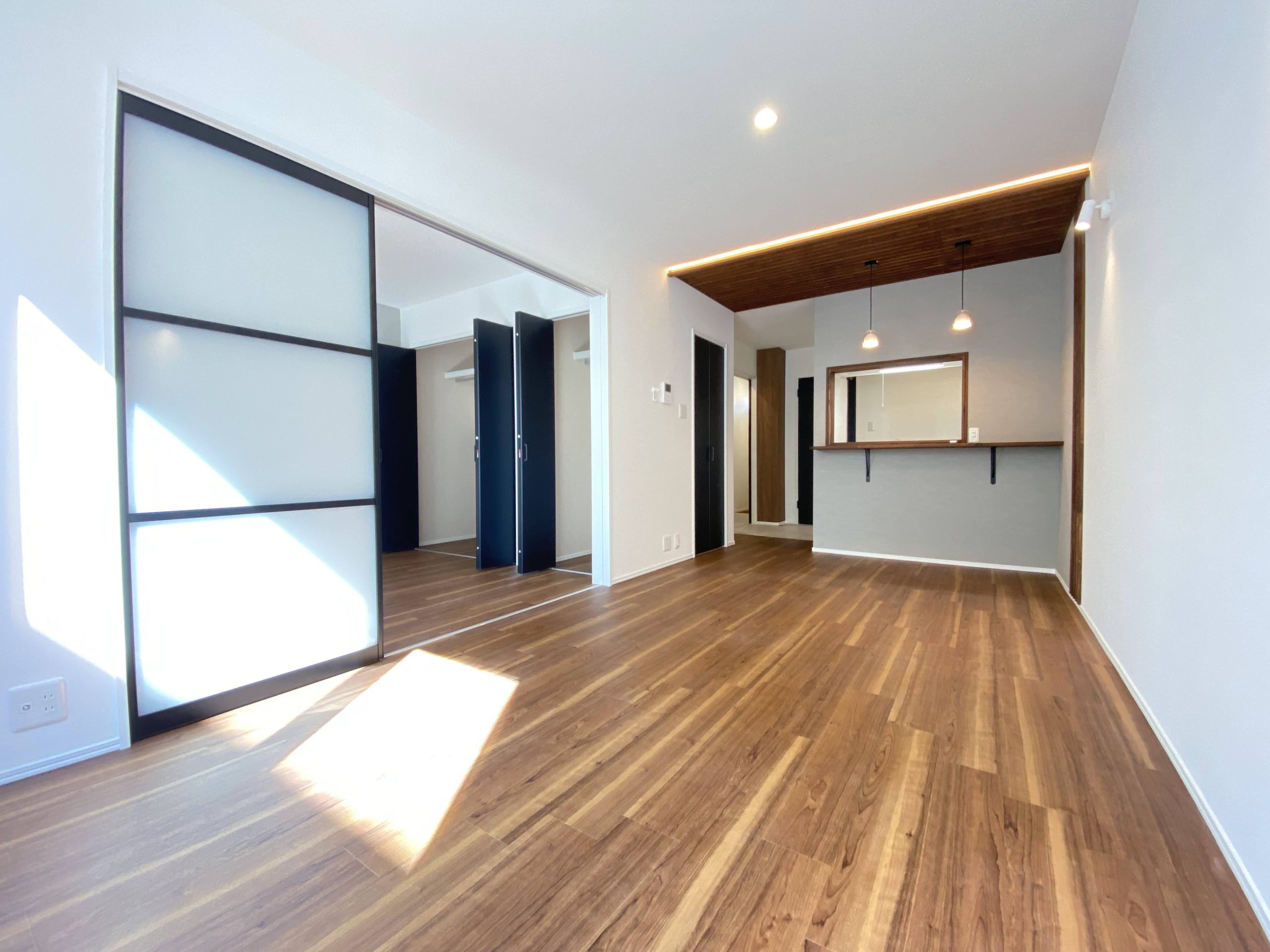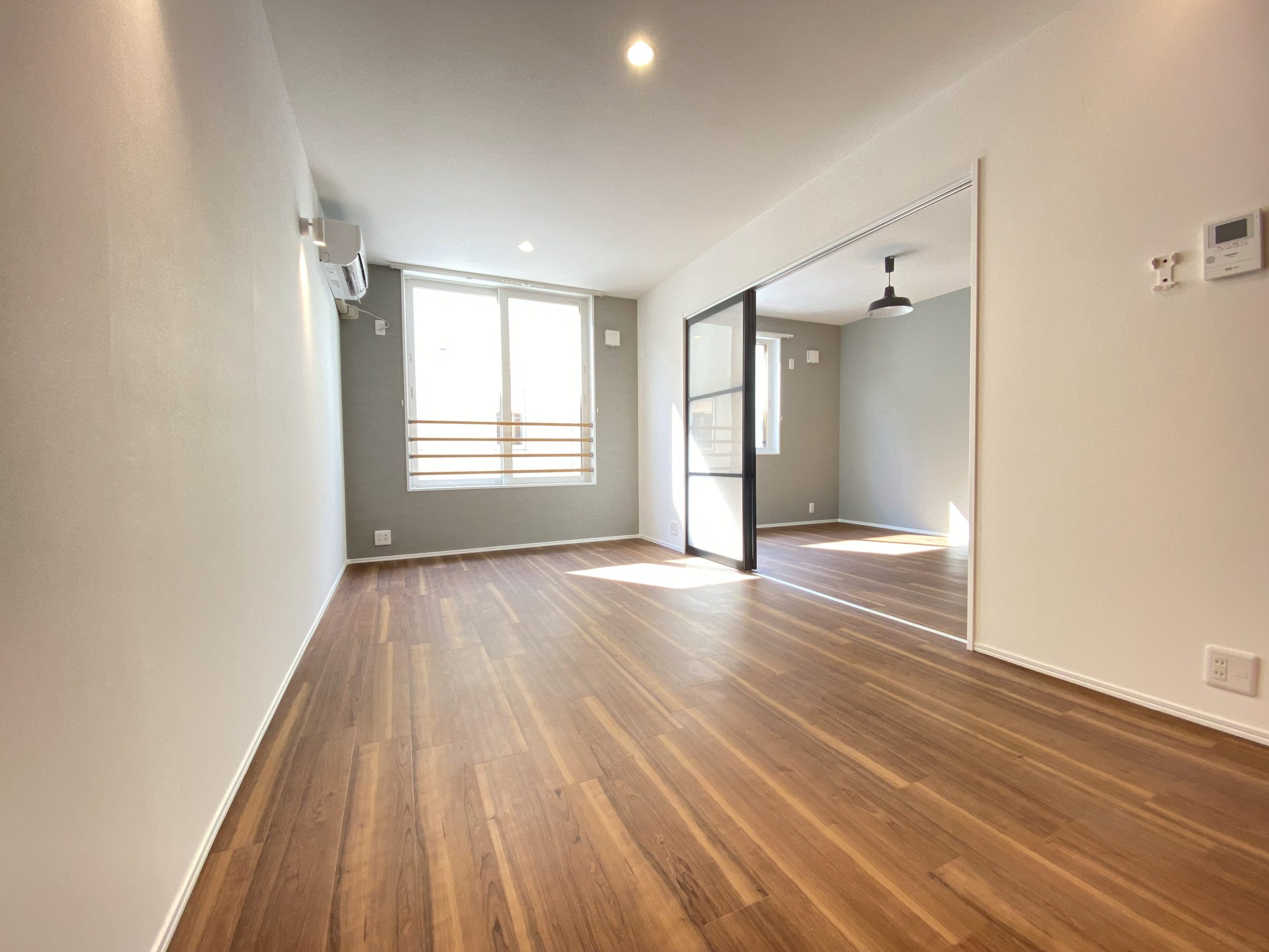 LDKに寒冷地エアコンが標準装備です!寝室にもエアコン用の電源があるので追加で設置も可能です。