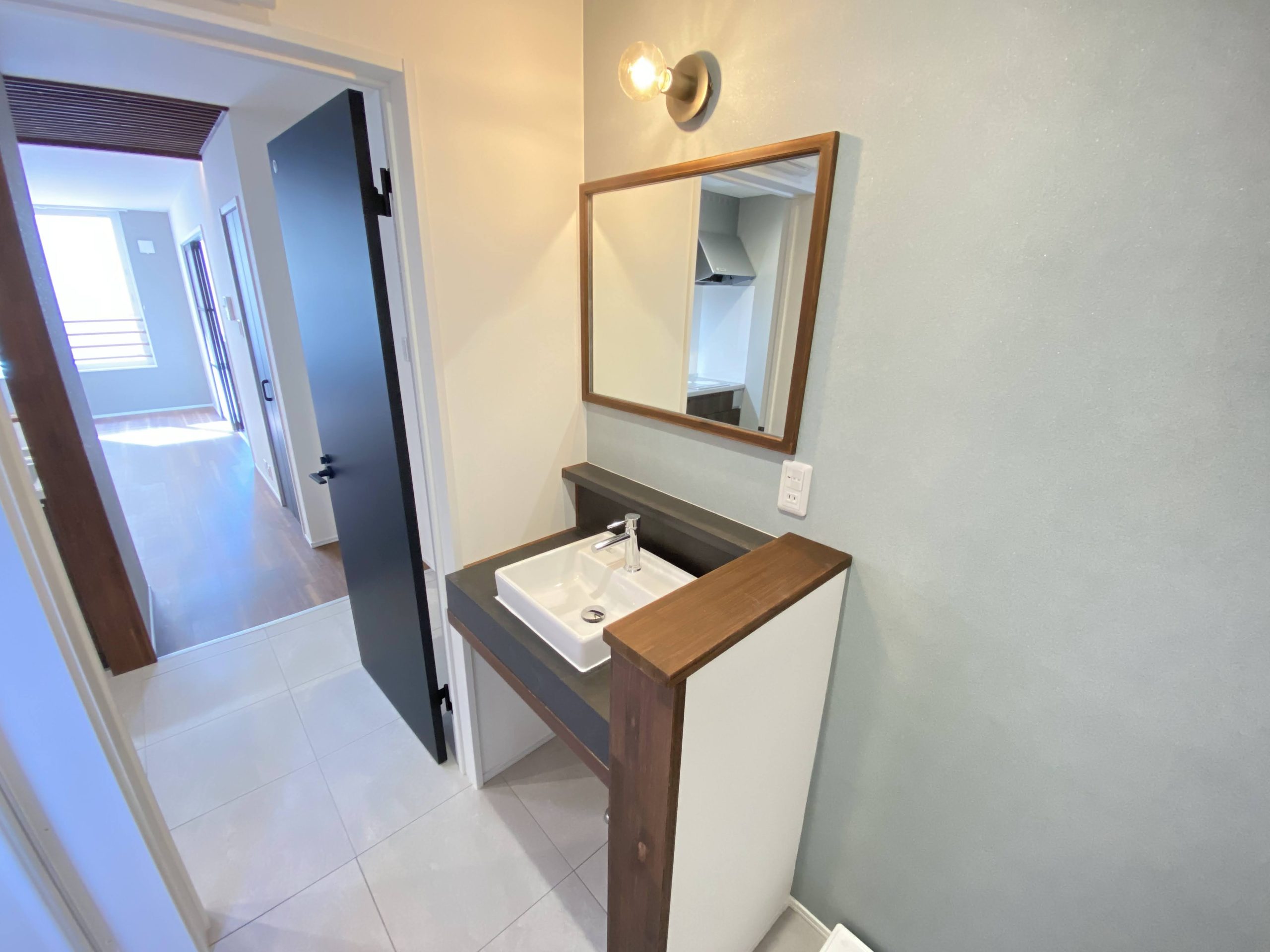 水に強いモールテックスを使ったオシャレな造作洗面台です。
